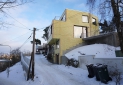 The house, located in Mälarhöjden, a suburb of Stockholm, sits on a very steep northern slope over-looking the lake Mälaren.