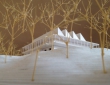The project is situated in the Norrviken botanical gardens west of Båstad by a river ravine overlooking the sea. The new cultural centre is geographically separated from the central Abelin’s gardens in order to give it an independent relationship with the existing buildings. The basic layout is as a square with verandas along the sides. There are two floors on split levels. The upper entrance floor contains exhibition halls with galleries and the upper part of the chamber music hall. The lower basement floor houses the lower part of the music hall, the restaurant and service premises and has an entrance to the outdoor terrace.